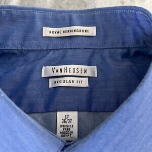 Van Heusen Royal Herringbone Blue Collared Button Down Dress Shirt Men's 17