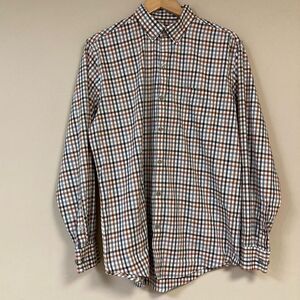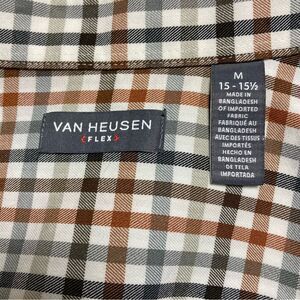 Van Heusen Shirt Mens Medium 15 15.5 Flex Fit Plaid Button Down Top Casual
