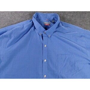 Van Heusen Shirt Men XXXL Blue Check Casual Traveler Classic Office Work Basic