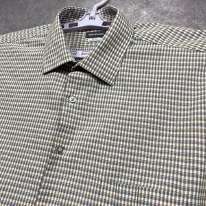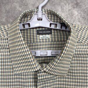Van Heusen Shirt Mens 18 34/35 Plaid Big Fit Wrinkle Free Button Up Long Sleeve