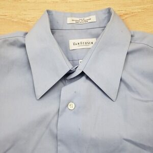 Van Heusen Shirt Mens Medium Blue Wrinkle Free Dress Button Up Pocket Business *