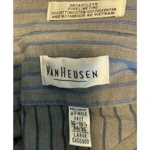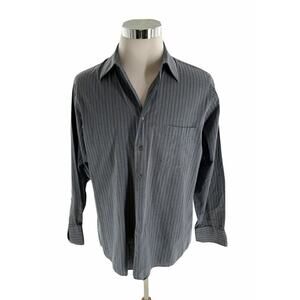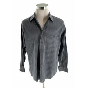 Van Heusen Shirt Mens Size Large Regular Fit Wrinkle Free Button Up Gray Striped