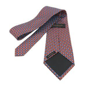 Van Heusen Silk Tie Men’s 59” Brown Blue Woven Geometric Diamond Wide New