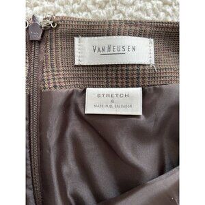 Van Heusen Skirt Brown Plaid Knee Length Pencil Lined Slit Size 4