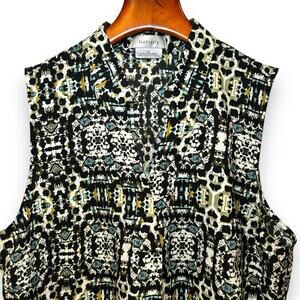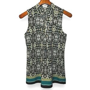 Van Heusen Sleeveless Split Neck Flowy Top Womens Size Medium Abstract Print