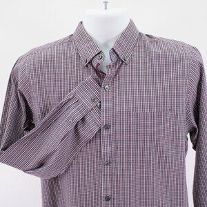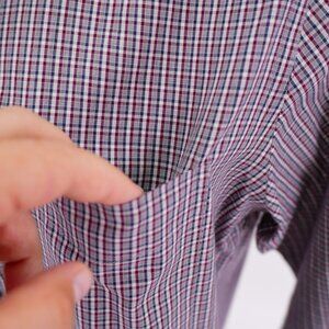 Van Heusen Slim Fit Red Blue Gray Plaid Pocket Button Down Flip Cuff Large Long