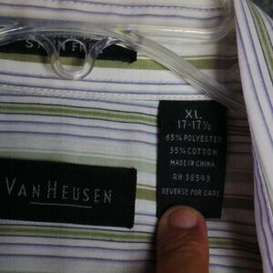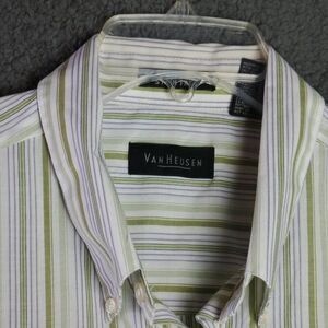 Van Heusen Stain Free Men's Size XL Shirt Striped White / Green Long Sleeve