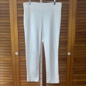 These leggings are in EUC, solid white with white patterning. Super stretchy with an open spit at ankle accented by three silver grommets. An amazing summer staple for any wardrobe capsule.