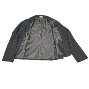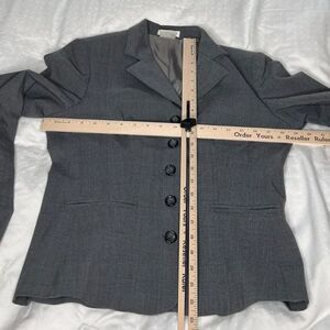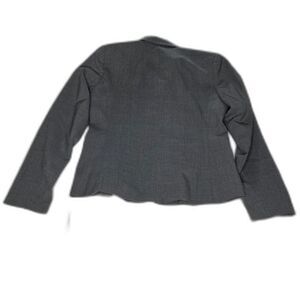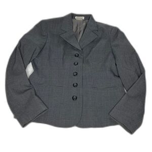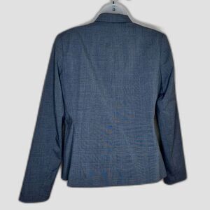 Van Heusen Stretch Women's Blazer Gray Plaid. 5 button, fully lined, notched collar, padded shoulders. 19" Pit to Pit, 23" Nap to Hem, Shoulder to Cuff 22.5". Shell: 64% Polyester, 33% Rayon, 3% Spandex. Lining: 100% Polyester.