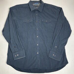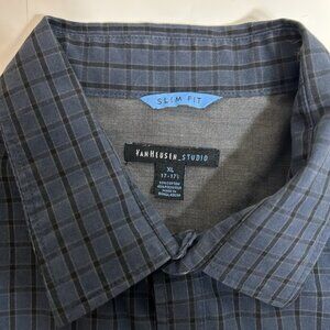 Van Heusen Studio Men Slim Fit Plaid Button Down Shirt Blue Black Sz XL 17-17.5