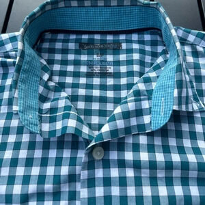 Van Heusen Studio Men’s Green & White Check Slim Fit Dress Shirt Size Small