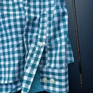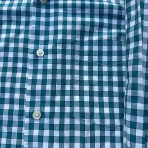 Van Heusen, Van Heusen Studio, men’s dress shirt, slim fit shirt, green check button down, gingham shirt, office wear, business casual, collared shirt, long sleeve dress shirt, plaid work shirt, layering shirt, everyday classic, easy care shirt, size small, modern fit