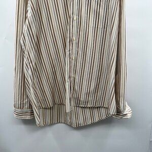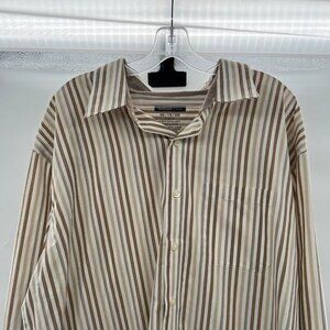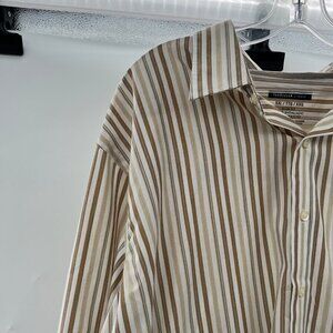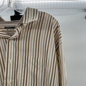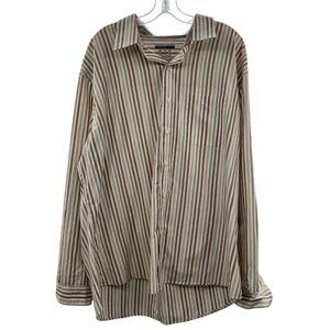 Van Heusen Studio Men's Long Sleeve Button Down Dress Shirt Tan/White Stripe XXL