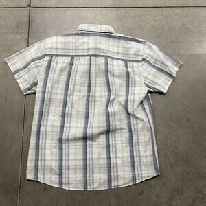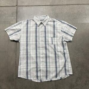 Van Heusen Studio Shirt Mens XL Slim Fit Gray Plaid Short Sleeve Button Down