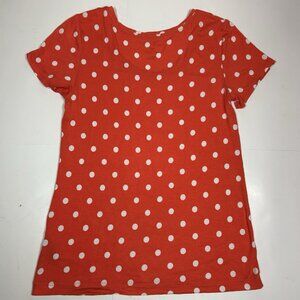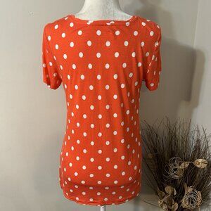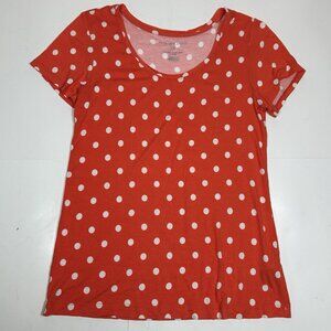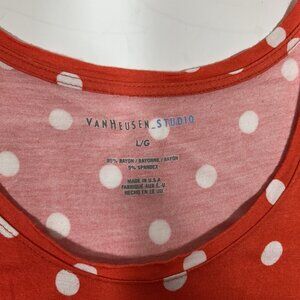 Van Heusen Studio Women Orange White Polka Top T-shirt Top Scoop Neck Sz L USA