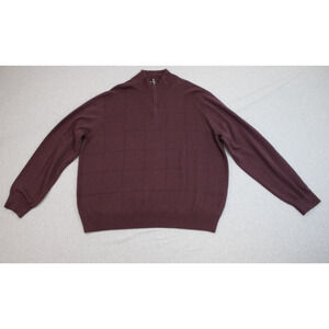 Van Heusen Sweater Men's 2XL Red Cotton Long Sleeve Loose Fit 1/4 Zip Pullover