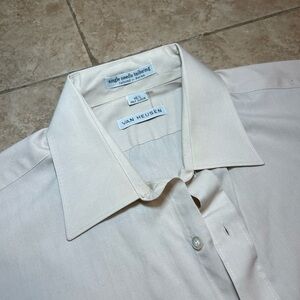 This casual button down shirt from Van Heusen features a light tan color and a relaxed fit, making it perfect for warm weather. The subtle pattern adds a touch of visual interest, while the short sleeves enhance its summer-ready appeal.
