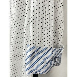 Van Heusen Originals Top Button-Up Shirt Collar White with Blue Polka Dots 3/4 Sleeve with Contrasting Stripe Roll Tab Flip Cuff Breast Pocket