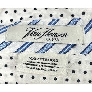 Van Heusen Top Button Up White Blue Polka Dot Shirt Contrast Flip Cuff XXL 2XL
