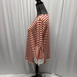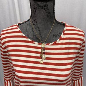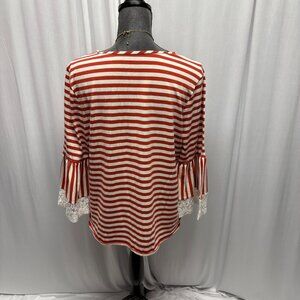 Van Heusen Top Womens Size Large Rust Cream Striped Bell Sleeve Casual Shirt