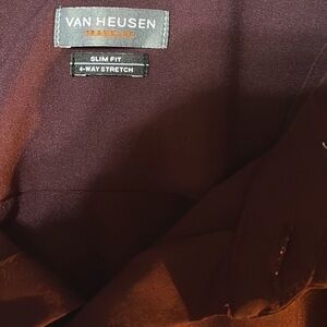Van Heusen Traveler Slim Fit 4-Way Stretch 16-16.5, 34/35 Large, Plum