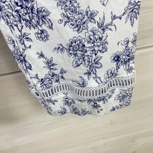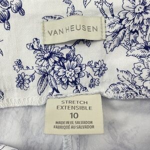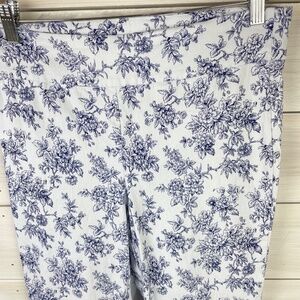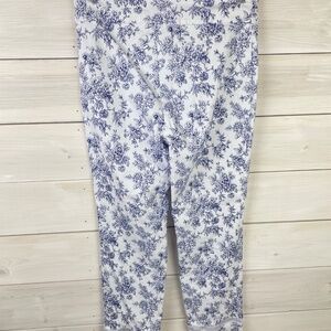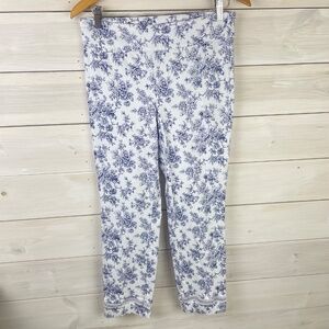 Van Heusen white and blue flowers stretch pants with lace cut-out detailing at ankle