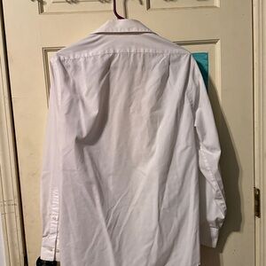 Classic white dress shirt. Long sleeves. Button-up front. Ideal for formal occasions.
