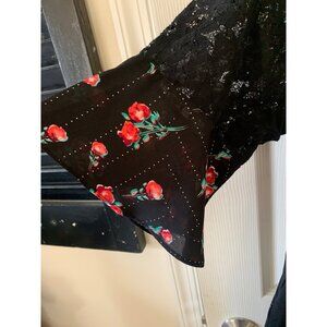 Add a pop of fun to your wardrobe with this black and red floral top. Lace sleeves and bell cuffs scream style louder than your karaoke nights.