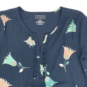 Van Heusen Women’s Blue Floral V-Neck 3/4 Sleeve Mixed Media Blouse Size Small S