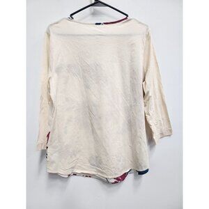 Van Heusen Womens Floral Print Top Large Cream Red Mixed Media Lace Contrast