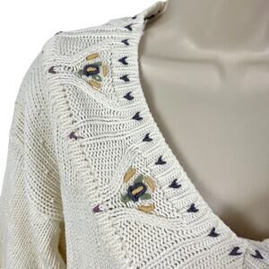 Van Heusen Womens Hand Embroidered Vintage Pointelle Chunky Knit Sweater sz S