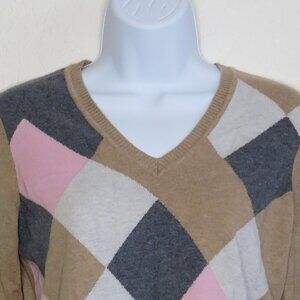 Van Heusen* Women's Long Sleeve V-Neck Straight Hem Argyle Pastel Sweater~ S/P