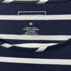 Van Heusen Womens Navy Blue Striped Top Medium Nautical Shirt Long Bell Sleeve