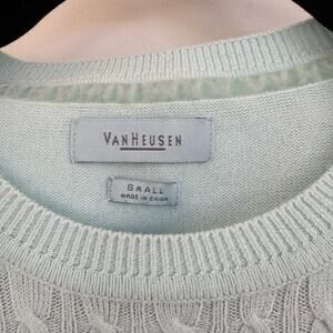 Van Heusen Womens Pale Teal Blue Crew Neck Cable Knit Sweater Size Small
