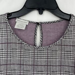 Van Heusen Womens XXL Pullover Knit Top Black Purple Houndstooth Plaid 3/4 Slv