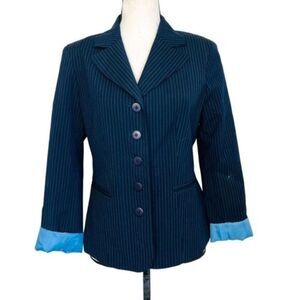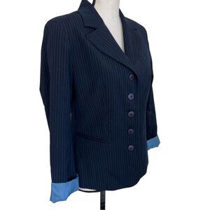 Van Heusen Womens Navy pinstripe contrast cuff tailored blazer jacket size small