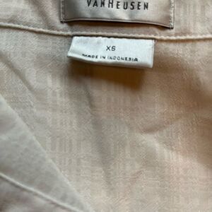 Van Heusen XS light cream button up blouse breast pocket semi sheer