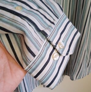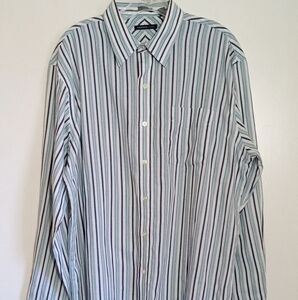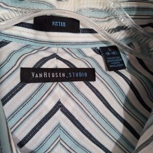 Van Heusen fitted button down shirt mens size Large 16-16.5. Great pre-owned condition with no flaws noted.