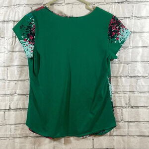 NWOT. Never worn. Van Heusen. Women’s green blouse. Floral. Short sleeves. V-neck. Size XS.
