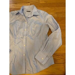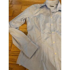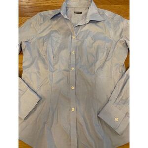 Van Heusen, women's blue non-iron long sleeve collared button down shirt size M