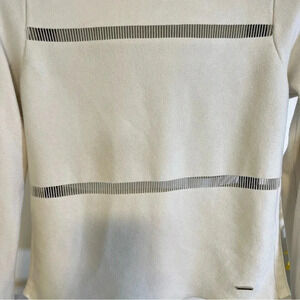 This Van Heusen women's sweater is a must-have for any fashion-conscious woman. Crafted from a blend of nylon and viscose, it is soft and comfortable to wear. The ivory color and round neckline give it a classic look, while the long sleeves make it perfect for cooler weather.