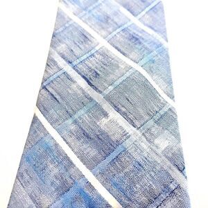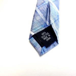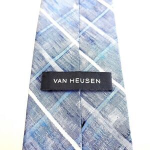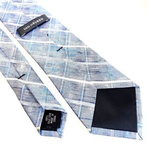 Van Heusen Blue Gray Plaid Woven Skinny Silk Tie