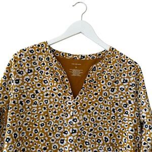 Van Heusen Mustard Floral V-Neck Mixed Media Print 3/4 Sleeves Office Career SZ M #2331