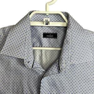 Van Laack Men's Shirt Size 16 Button Up Blue White Geometric