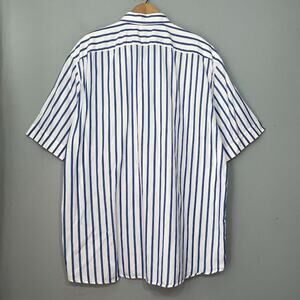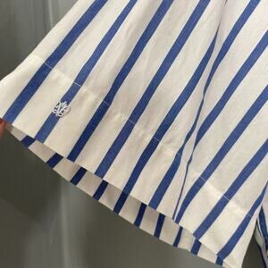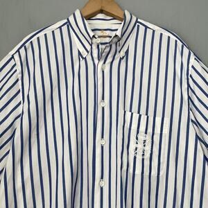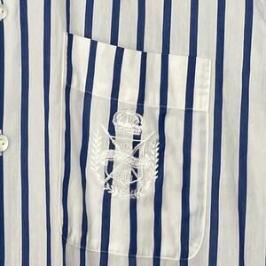 Van Laack Mens Size XL Blue White Stripe Button Down Shirt Preppy Crest Nautical