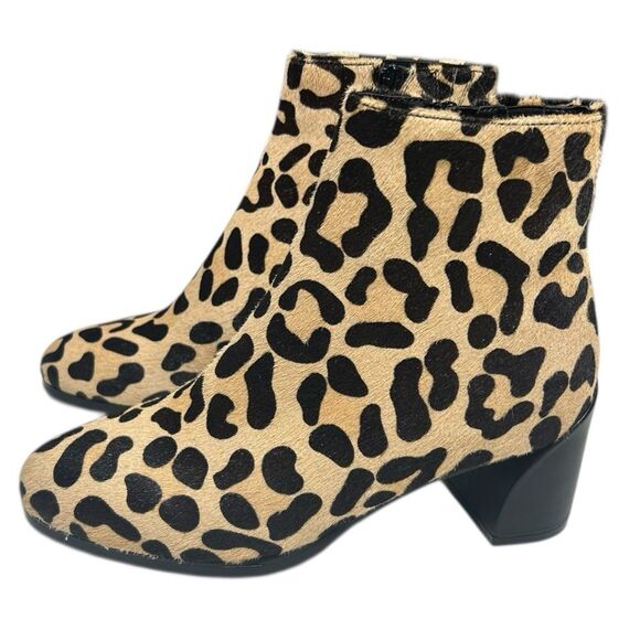 Van Eli Calf Hair Leopard Print Ankle Boots Size 7 Block Heel Cheetah Print