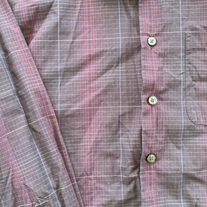VanHeusen 2XL Mens Shirt Top Buttons Red Multi Colored Long Sleeve Good Condition