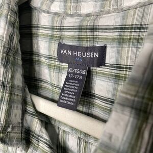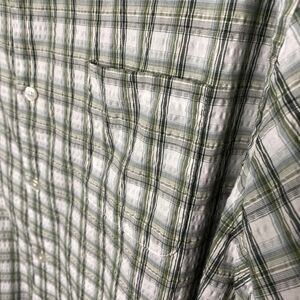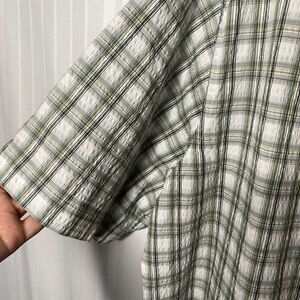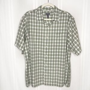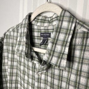 Van Heusen AIR Short Sleeve Plaid Crinkle Button Down Shirt XL Green White Men's