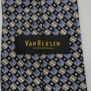 Van Heusen Gray Blue Geometric Woven Wide Silk Tie