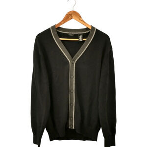 VanHeusen Large Black Grey Cardigan 100% Cotton Preppy Academia